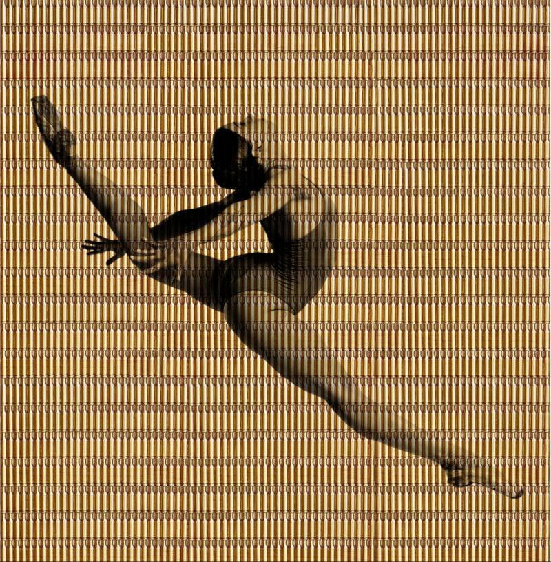 Printed in black on empty bullet casings, the dancers’ silhouettes transform objects of violence and brutality into vessels of meaning. The work embodies a tension between delicacy and destruction, with each piece carrying physical and symbolic weight that underscores art’s capacity for resistance and transformation in the face of war. A portion of the proceeds from every sale will be donated to Ukrainian relief.